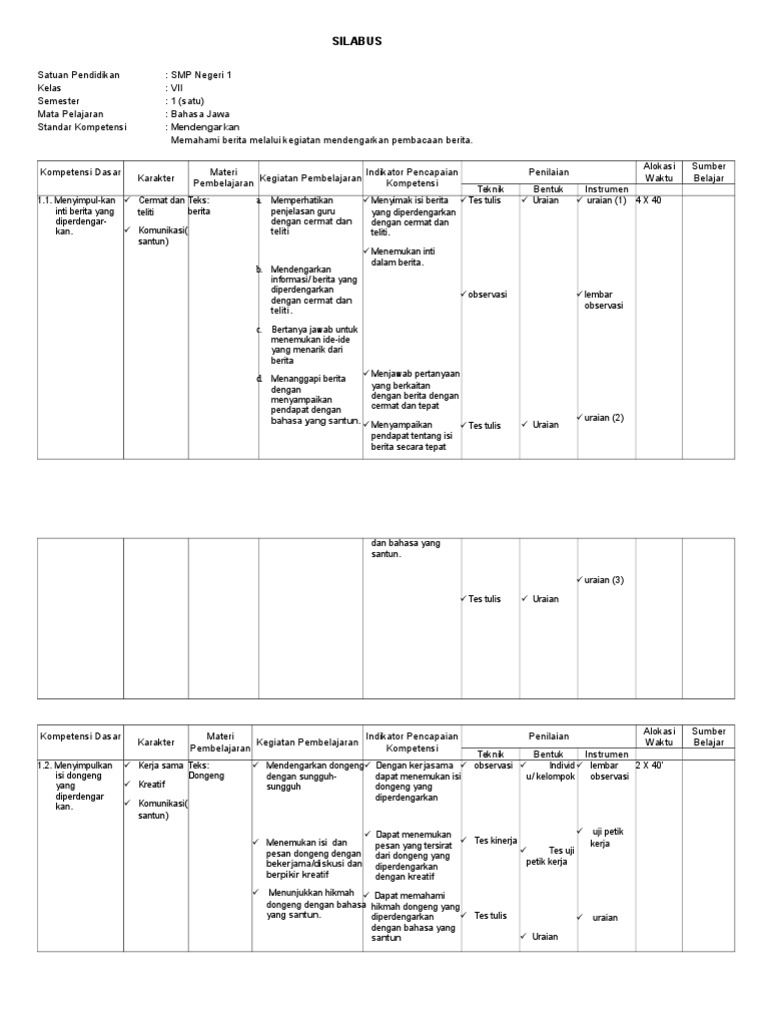 Silabus Kelas Vii Bahasa Jawa Pendidikan Karaker
