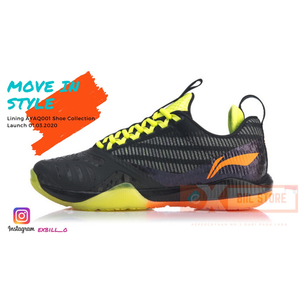 Exbill Sepatu Badminton Lining New Shark Ayaq001 Gaya Terbaru 2020 Hitam Stabilo Shopee Indonesia