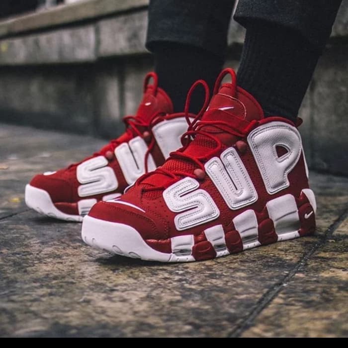 Sepatu Supreme X Nike Air More Uptempo Red White Premium Original Shopee Indonesia