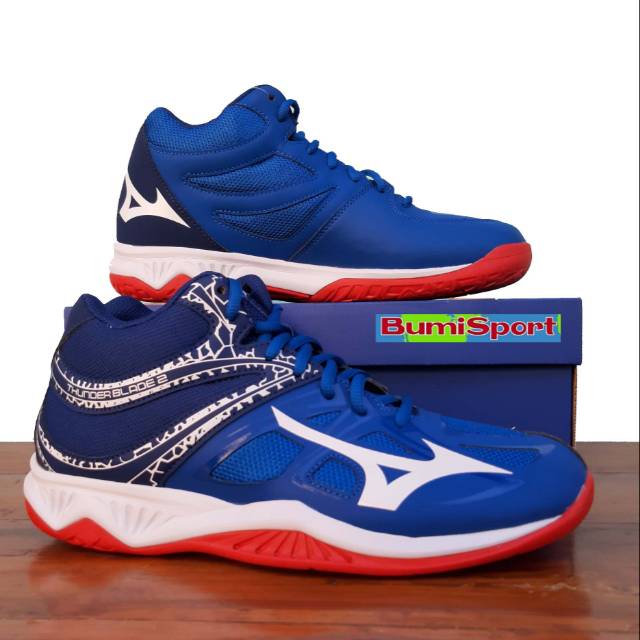 Sepatu Volleyball Mizuno Thunder Blade 2 Mid Voli Blue White Red Original Shopee Indonesia