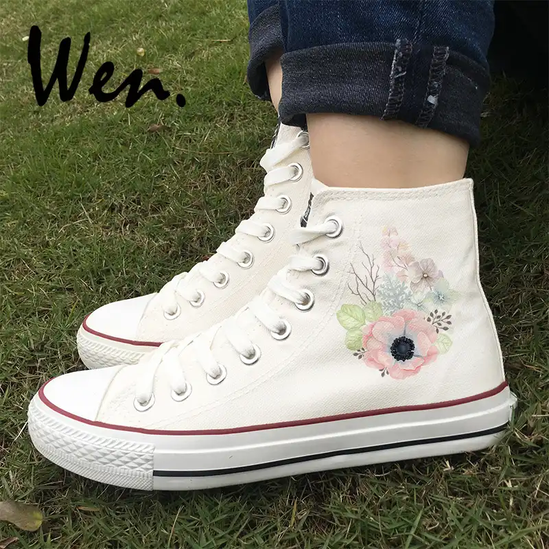Wen Skate Sepatu Skate Desain Cat Air Burung Bunga Tinggi Top Putih Athleisure Sepatu Wanita Sepatu Kets Kanvas Hitam Pilihan Pilihan Tinggi Sepatu Kanvas Aliexpress