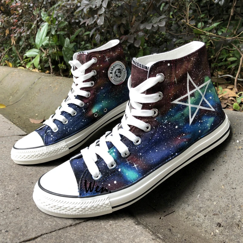 Wen Tangan Dicat Sepatu Asli Desain Galaxy Pentagram Nebula Harajuku Pria Wanita Tinggi Atas Kanvas Sepatu Sneakers Adidas Sneakers Tennis Shoessneakers Discount Aliexpress