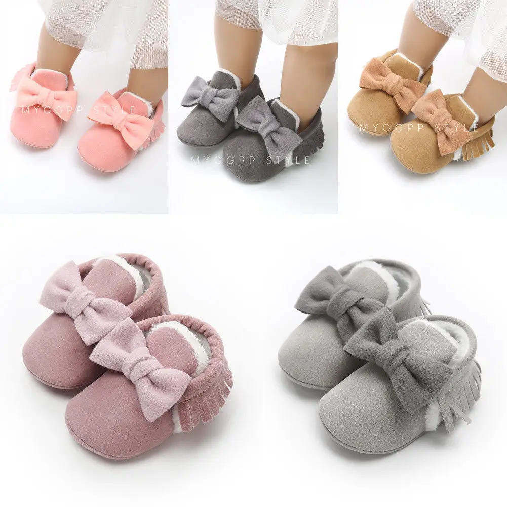 Fashion New Newborn Baby Girls Bowknot Shoes Soft Crib Shoes Toddler Infant Warm Fleece First Walker Baby Girls Shoes Winter Kid Shop Global Kids Baby Shop Online Baby