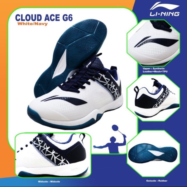 Sepatu Badminton Lining Cloud Ace G6 White Navy Cushion Original Di Lapak Ricky Bukalapak