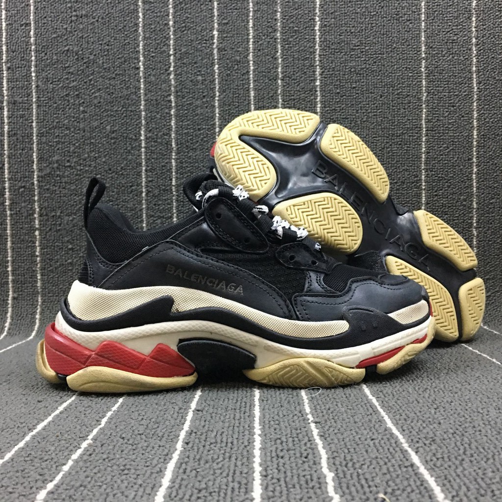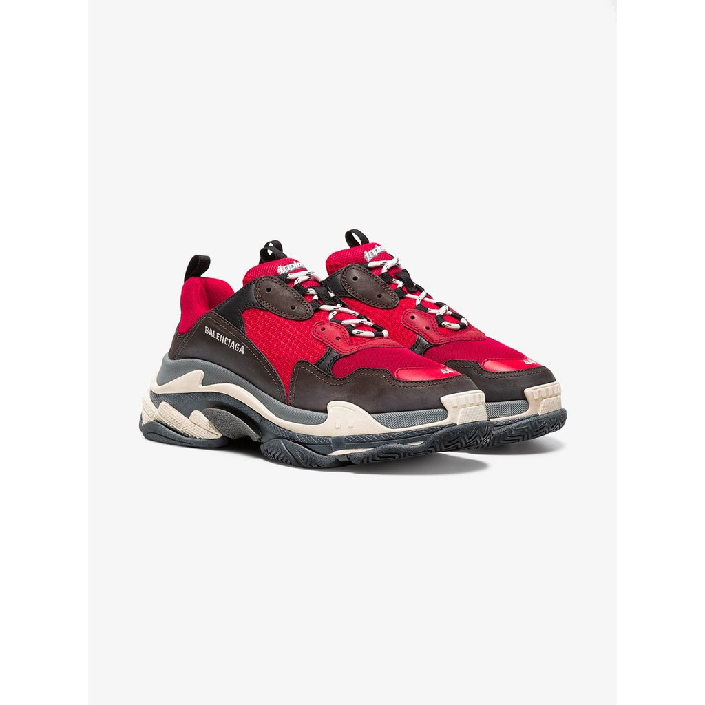 Sepatu Sneakers Olahraga Model Balenciaga Triple S Bred Merah Hitam Unauthorized Original Untuk Pria Shopee Indonesia