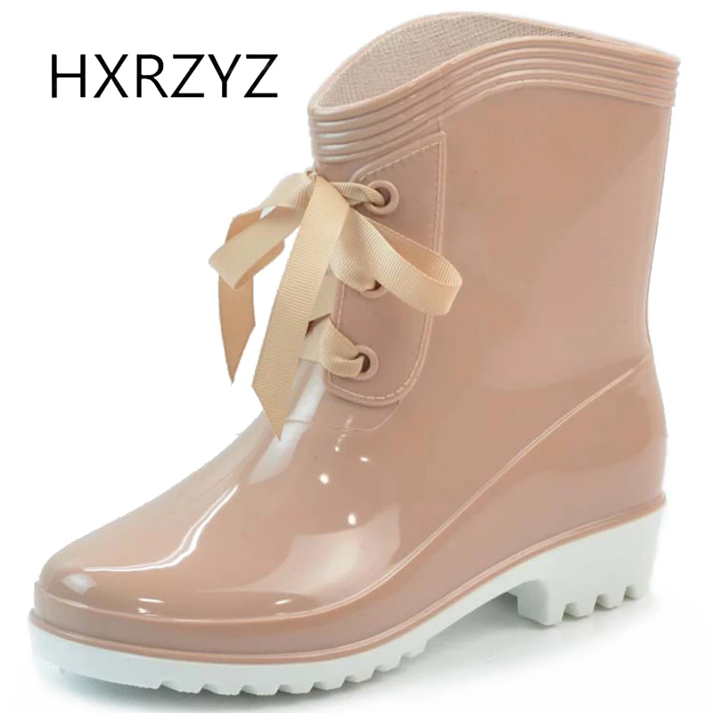 Hxrzyz Perempuan Boots Hujan Sepatu Bot Karet Hitam Musim Semi Dan Musim Gugur New Fashion Pvc Lace Up Slip Tahan Ankle Boots Sepatu Wanita Boot Shoes Ankle Boots Shoesboot Shoes Woman Aliexpress