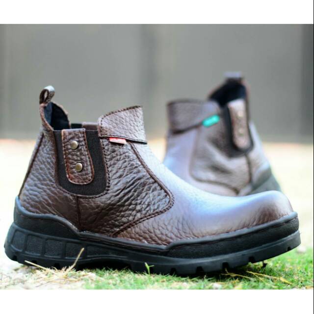 Sepatu Safety Ujung Besi Kicker Boots Pria X Pto Brown Bahan Kulit Asli Aman Buat Naik Gunung Ringan Shopee Indonesia