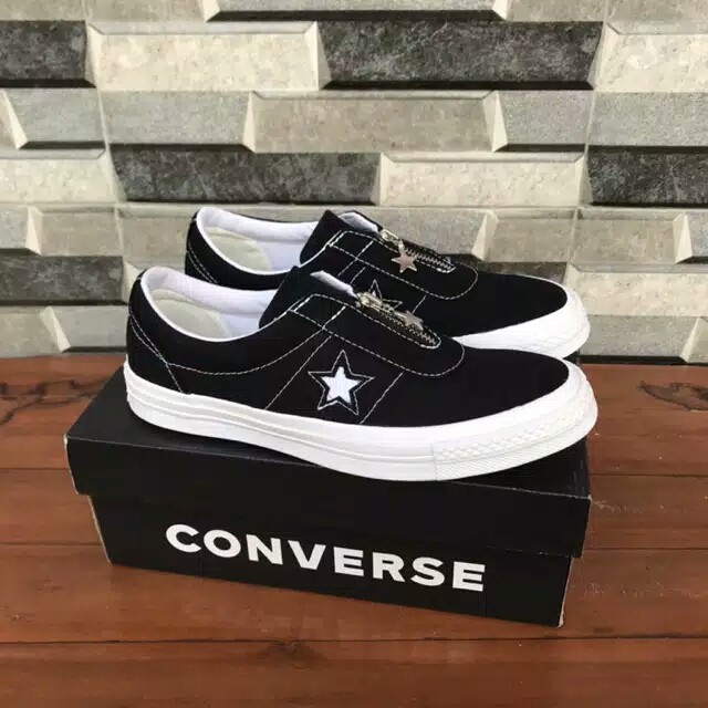 Sepatu Converse One Star Ox Women Sunbaked Slip On Zip Black White Original Shopee Indonesia