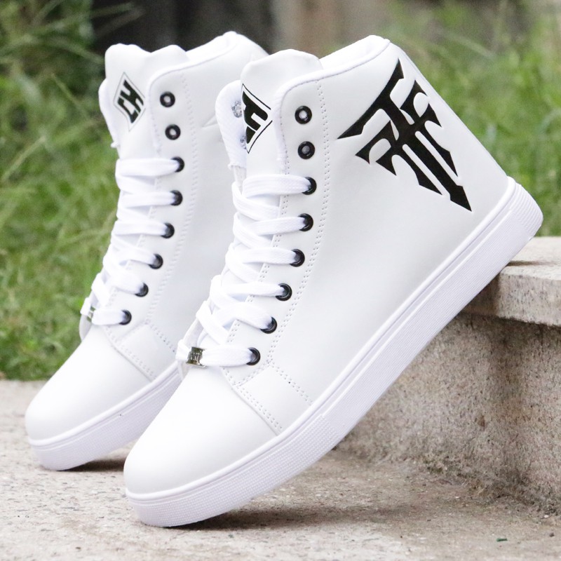 Fashion Pria Kasual Atasan Tinggi Sepatu Kets Olahraga Lari Atletik Sepatu Renda Up Sepatu Bot Setumit Putih Lazada Indonesia