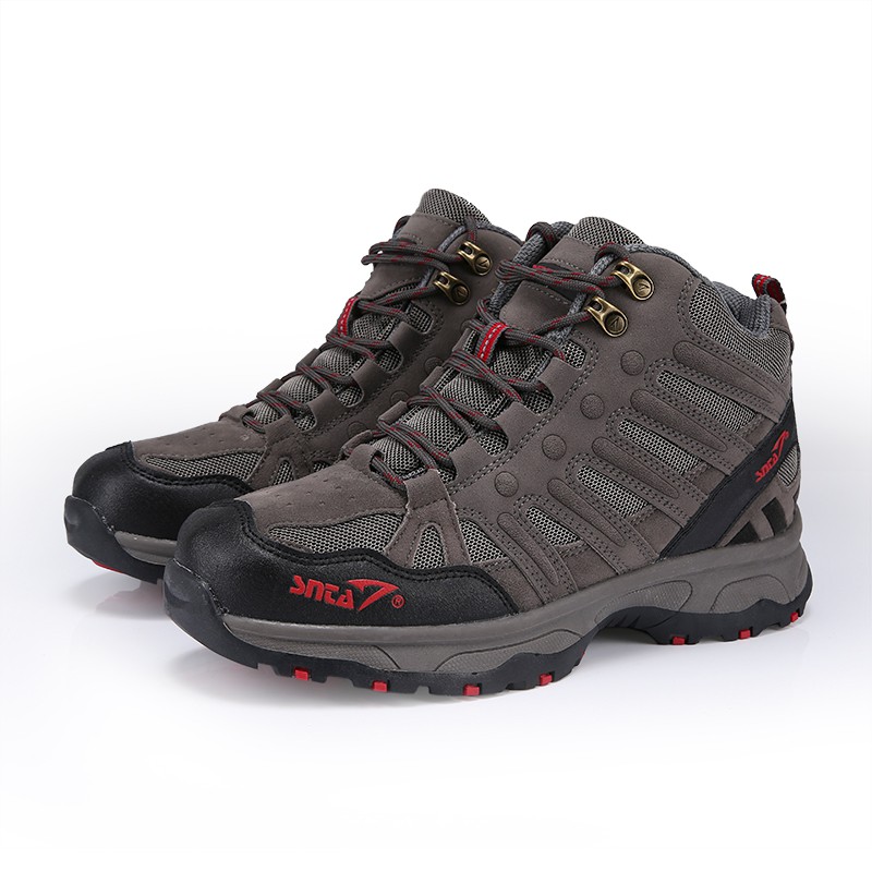 Sepatu Gunung Snta 487 Grey Red Hiking Outdoor Semi Waterproof Shopee Indonesia