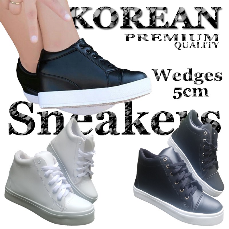 Sneakers Wanita Hak Tinggi 5cm Sepatu Sneaker Cewek Hitam Putih Baju Kebumen