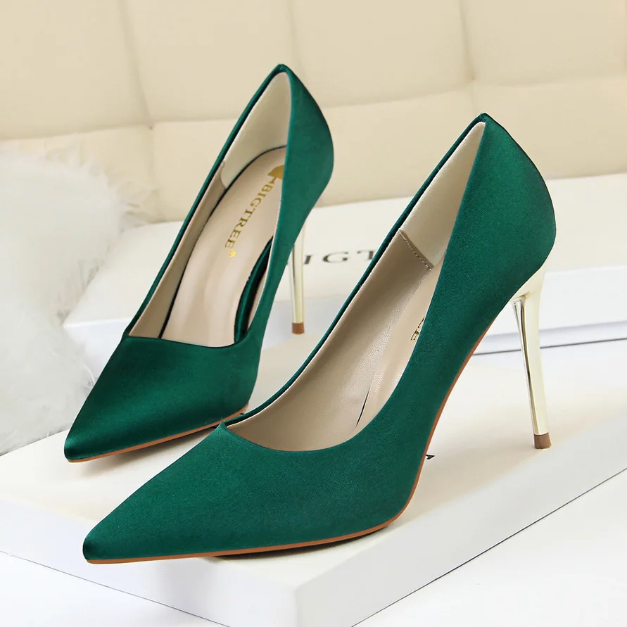 2020 Plus Ukuran 43 Wanita 10 5 Cm Sepatu Hak Tinggi Wanita Seksi Glitter Scarpins Satin Pumps Stiletto Pernikahan Bridal Kuning Hijau Sutra Sepatu Wanita Pompa Aliexpress
