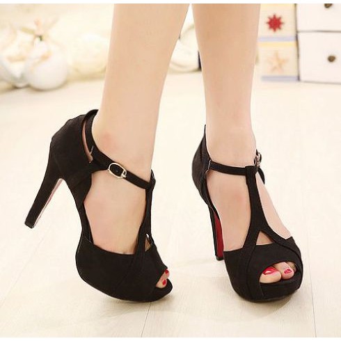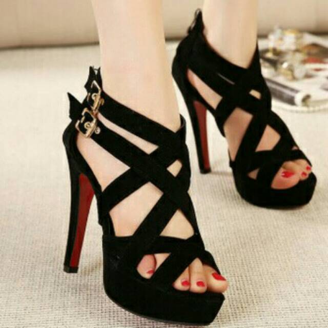 Jual High Heels Wanita Korea Silang Gesper Tbs Em Hitam Suede Lembut Bludru Hitam 39 Kab Bandung Barat Zafirashoes Tokopedia