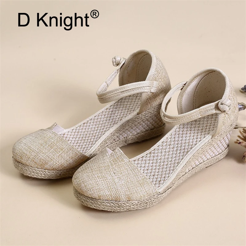 Baru 2020 Musim Panas Wanita Sepatu Hak Tinggi Sandal Handmade Tali Pergelangan Kaki Wanita Kanvas Sandal Wanita Korea Wedge Sandal Sepatu Wanita Sandal Aliexpress