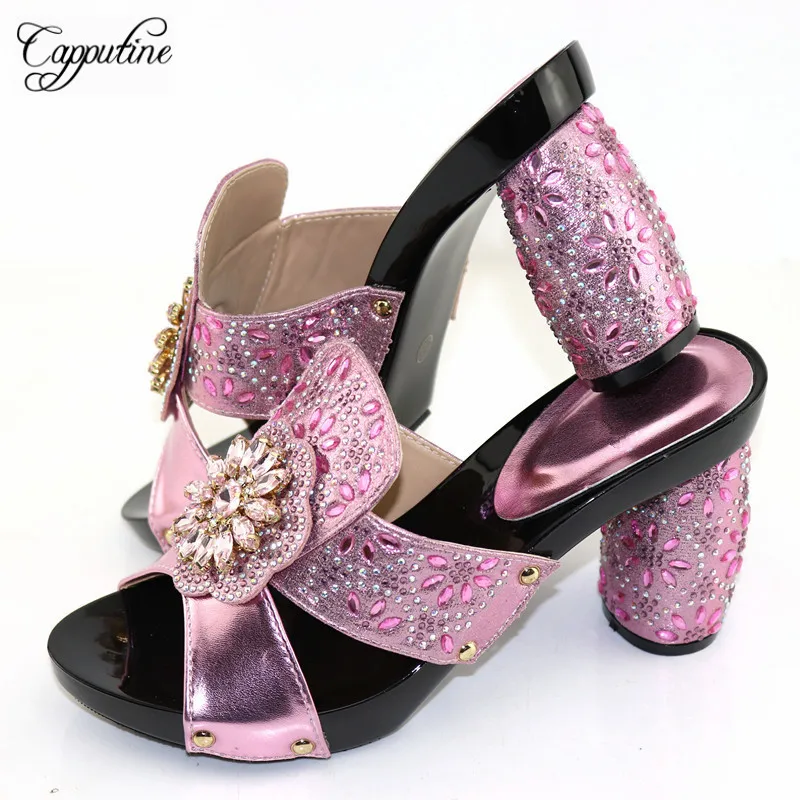 Hot Menjual African Berlian Imitasi Wanita Warna Pink Sandal Sepatu Musim Panas Wanita Sepatu Hak Tinggi Sepatu Untuk Pernikahan Wanita Pompa Aliexpress