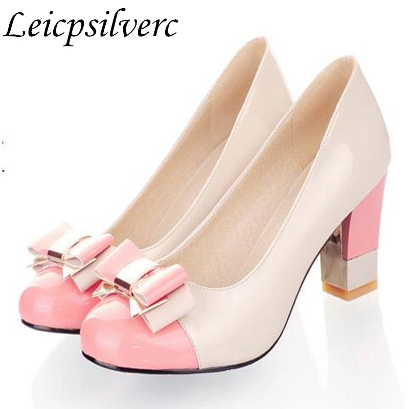 Ukuran 34 43 Hot Warna Permen Wanita Pompa Dangkal Blok Warna Tebal Sepatu Hak Tinggi Dasi Kupu Kupu Merah Muda Bekerja Sepatu Wanita High Heel Shoes Heel Shoeswork Shoes Women Aliexpress