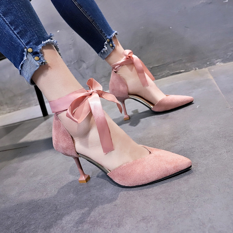 Jual Sepatu Wanita Hak Tinggi 5 Cm Suede Tali Pink Dan Hitam Hitam 37 Kota Depok All U Can Buy Sepatu Tokopedia