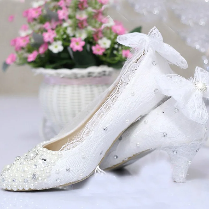 Mode Warna Putih Wanita Tumit Tengah Sepatu Renda Mutiara Sepatu Hak Tinggi Pernikahan Perayaan Prom Sepatu Gratis Pengiriman Pearl Wedding Shoe Prom Shoeswedding Shoes Aliexpress