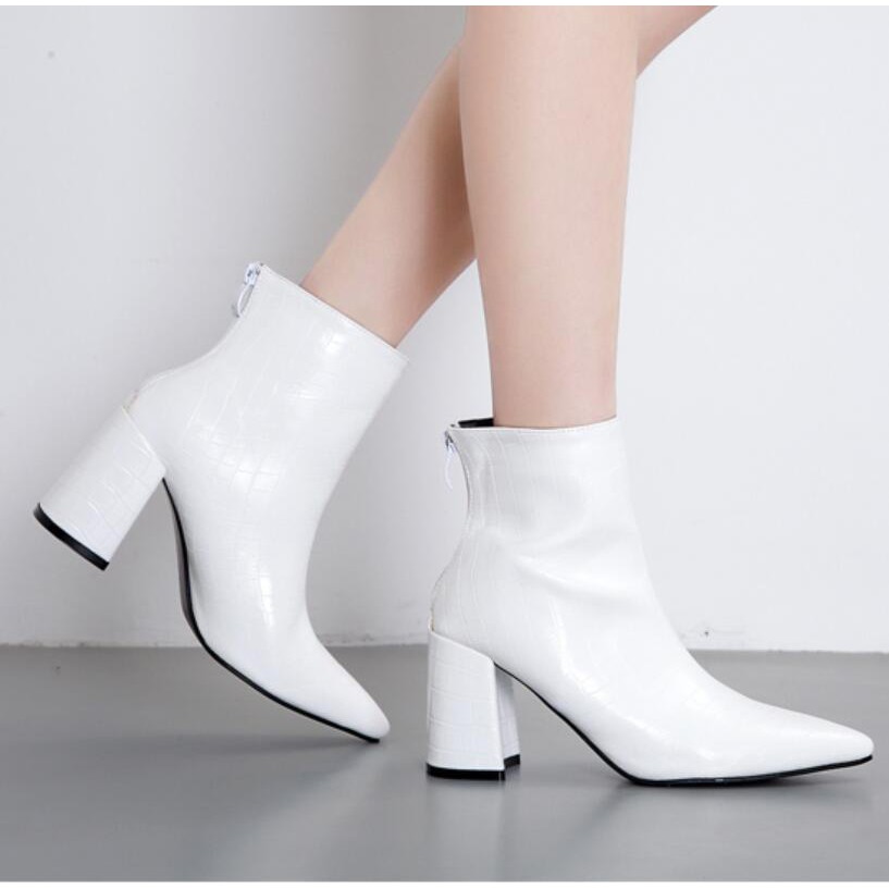 Sepatu Boots Martin Wanita Model Eropa Amerika Pointed Toe High Heels Warna Putih Shopee Indonesia