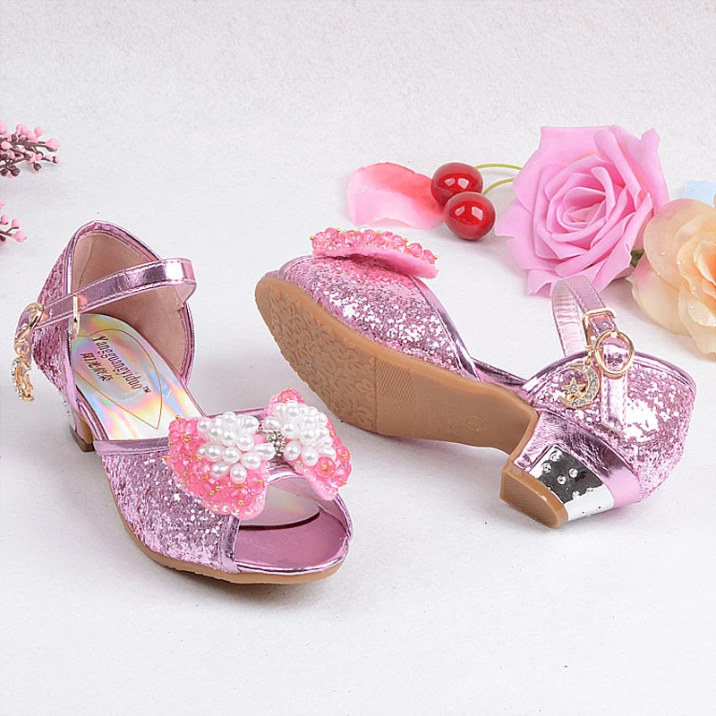 Busur Mengkilap Gadis Sandal Anak Kristal Sepatu High Heels Putri Untuk Anak Perempuan Ikan Mulut Sandal Sepatu Pesta Kulit Anak Anak Princess Shoes For Girls Princess Shoesgirls Sandals Aliexpress