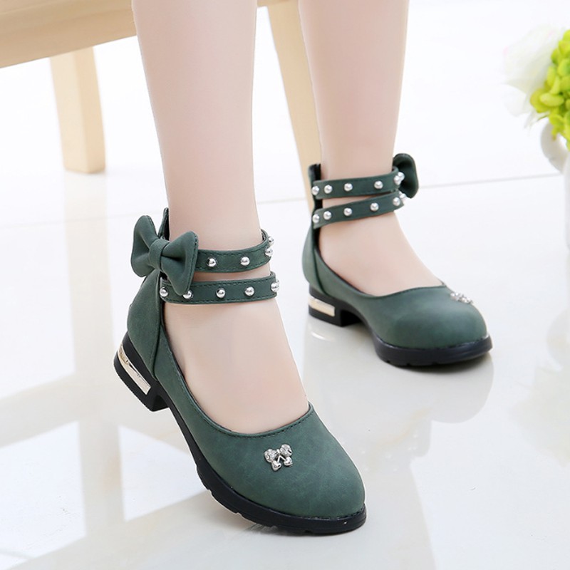 Sepatu High Heels Anak Perempuan Bahan Kulit Aksen Pita Untuk Musim Semi Gugur Shopee Indonesia