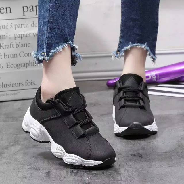 Sepatu Import Wanita Korea 2020 Ori Murah Model Sneakers Tipe Bl 01 Warna Hitam Sepatu Wanita