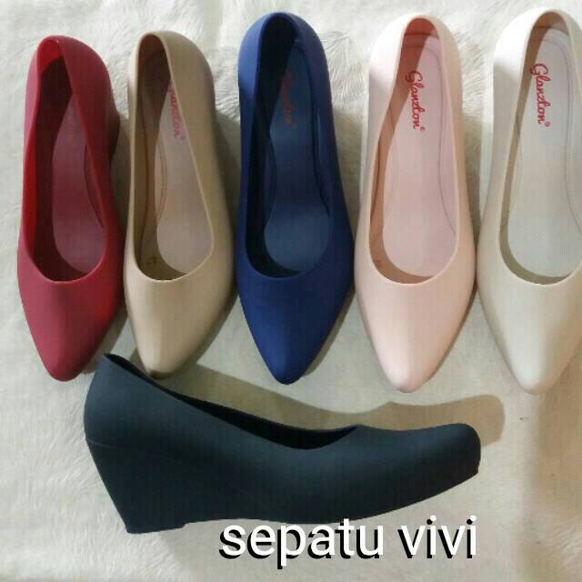 Sepatu Wedges Jelly Shoes Glossy Karet Wanita Cewe Bandung Jualo