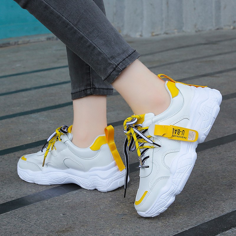 Sepatu Sneakers Wanita Gaya Korea Warna Kuning Kasual Sol Tebal Sepatu Olahraga Sepatu Lari Shopee Indonesia