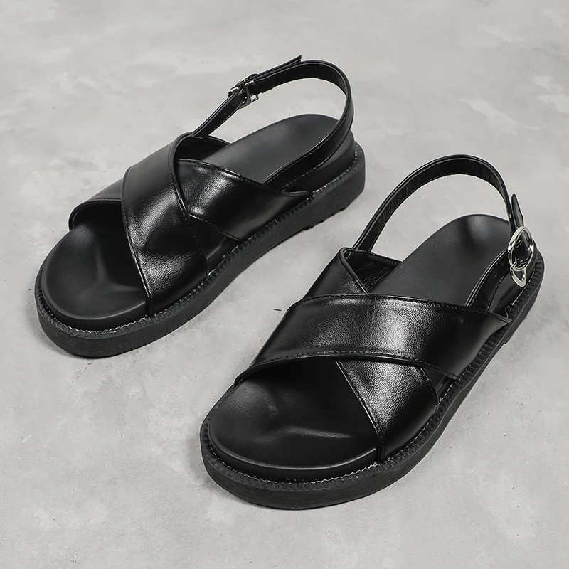 2019 Baru Sandalias Mujer Baru Kedatangan Klasik Kulit Hitam Nyaman Platform Sandal Wanita Flat Sepatu Karet Wanita Wanita Sandal Aliexpress