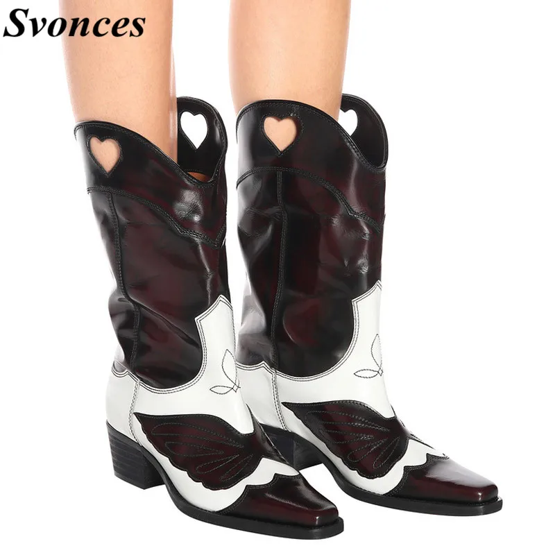 2019 Pasang Kaos Mujer Kulit Colorblock Sepatu Karet Wanita Rendah Hak Square Setengah Sepeda Motor Sepatu Bot Sepatu Betis Tinggi Sepatu Bot Koboi Sepatu Mid Calf Boots Aliexpress