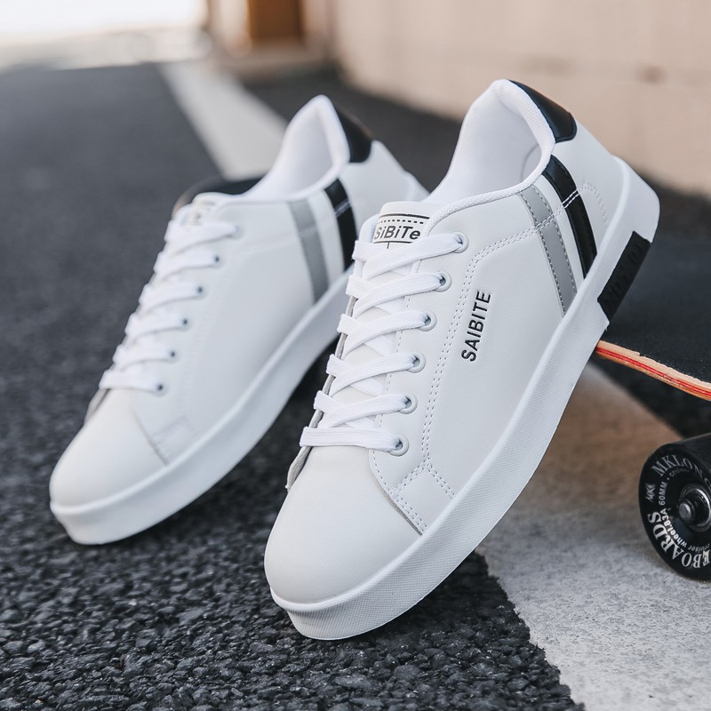 Cod Sepatu Sneaker Pria Warna Putih Sepatu Casual Kulit Sepatu Sekolah Gaya Korea Sepatu Kets Pria Shopee Indonesia