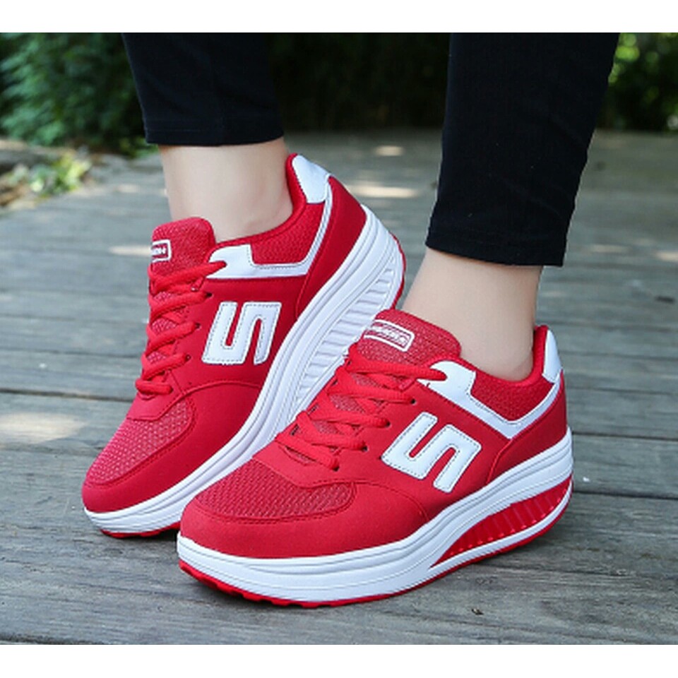 Jual Sepatu Kets Wedges Wanita Merah Hakiki Store Ralali Com