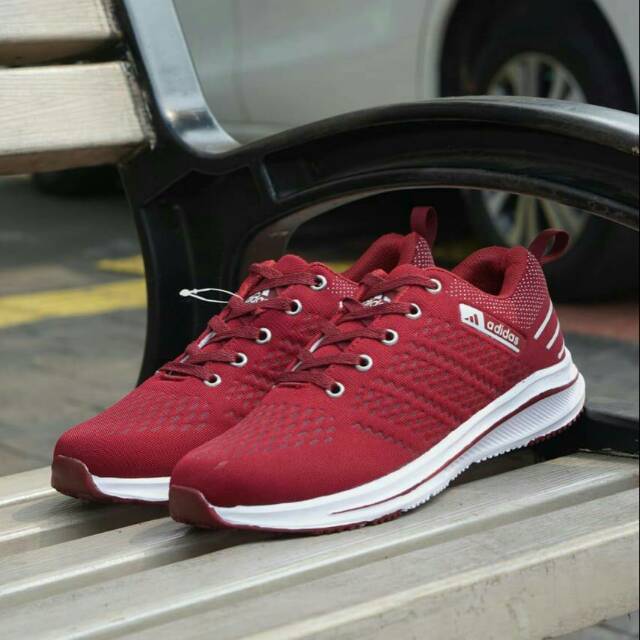 Sepatu Kets Sneakers Adidas Maroon Cewek Wanita Jogging Running Sport Casual Modis Murah Shopee Indonesia