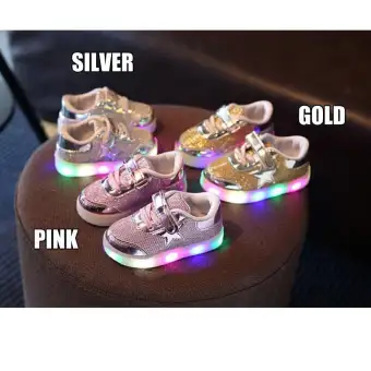 Sepatu Wing Lampu Led Shoes Gold Pink Silver Emas Anak