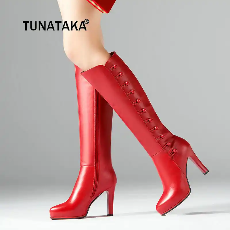 Kulit Asli Sepatu Wanita Sepatu Boot Selutut Tumit Tinggi Sepatu Bot Musim Dingin Fashion Sexy Wanita Panjang Hitam Merah Sepatu Bot Sepatu Resleting 2019 Aliexpress