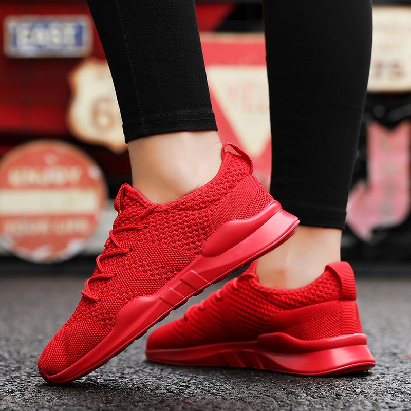 Cod Sepatu Olahraga Lari Wanita Warna Merah Sepatu Sneakers Kasual Wanita Baru Sepatu Sekolah Shopee Indonesia