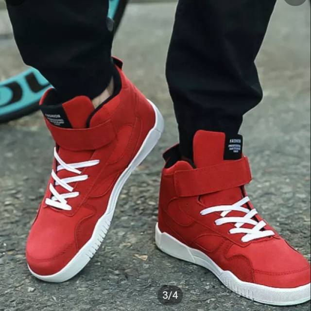 Sepatu Sneakers Casual Pria Model High Top Warna Merah Untuk Santai Shopee Indonesia