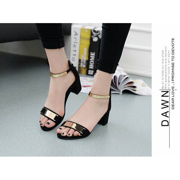 Sandal High Heels Cewek Wanita Hitam Gold Murah Modis Casual Kerja Pesta Shopee Indonesia