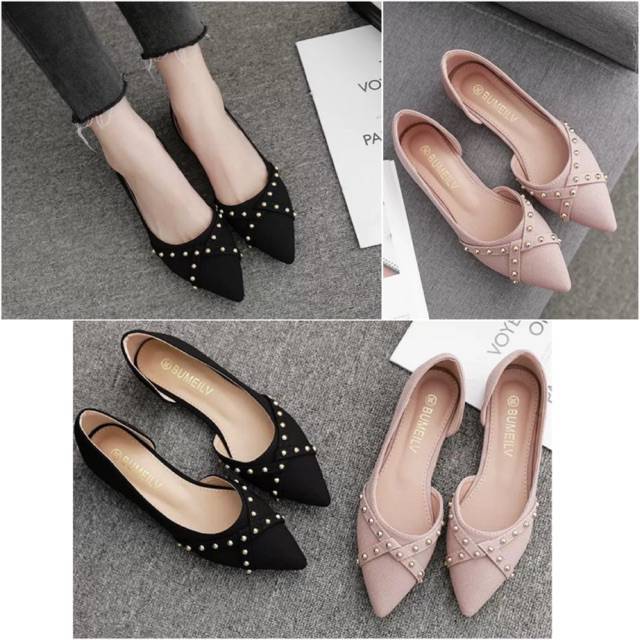 Sepatu Wanita Flat Shoes Mote Fashion Korea Modis Sepatu Pesta Kerja Kantor Hitam Cream Elegan Kece Shopee Indonesia