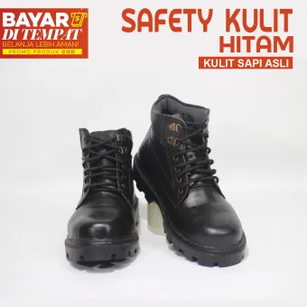 Sepatu Safety Kulit Sapi Asli Pria 100 Kulit Asli Kerja Lapangan Proyek Hitam Sepatu Safety