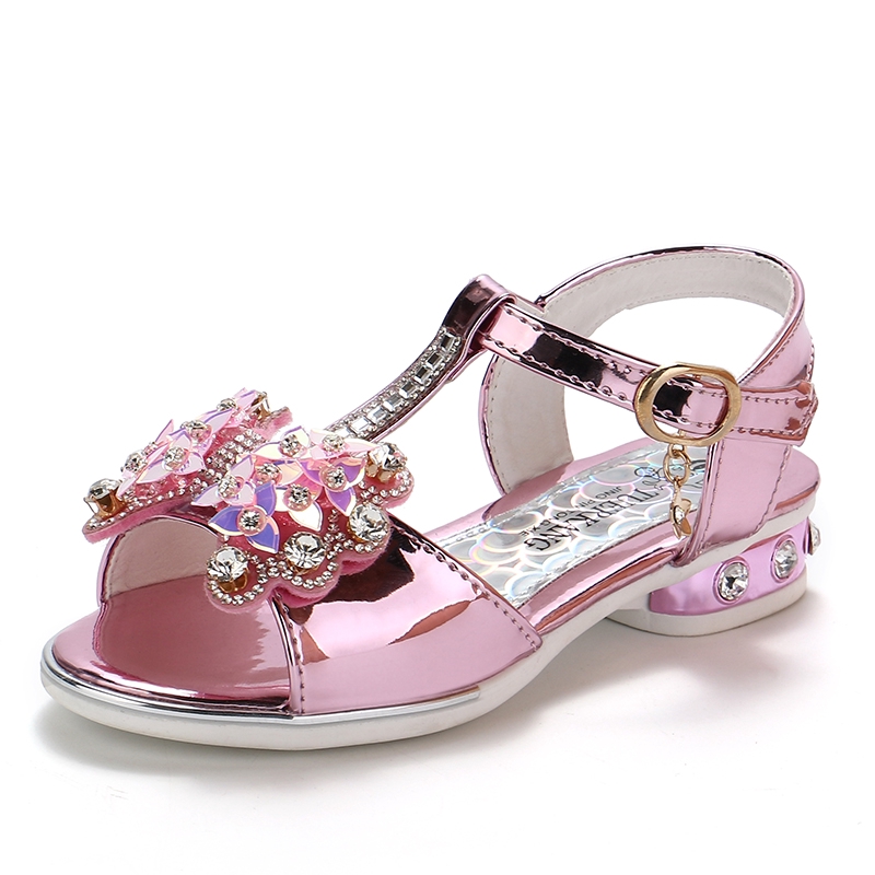 Anak Putri Elegan Sandal Anak Perempuan Sepatu High Heels Dress Partai Beaded Sepatu Pernikahan Pu Kulit Untuk Anak Perempuan Merah Muda Putih Princess Sandals Leather Shoesgirls Kids Dress Shoes Aliexpress