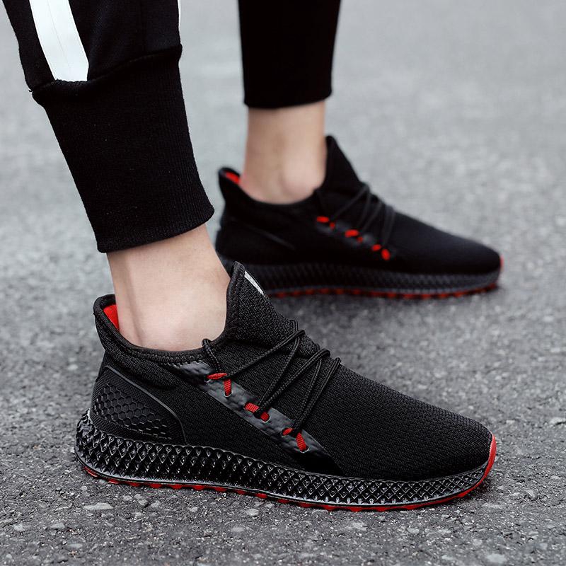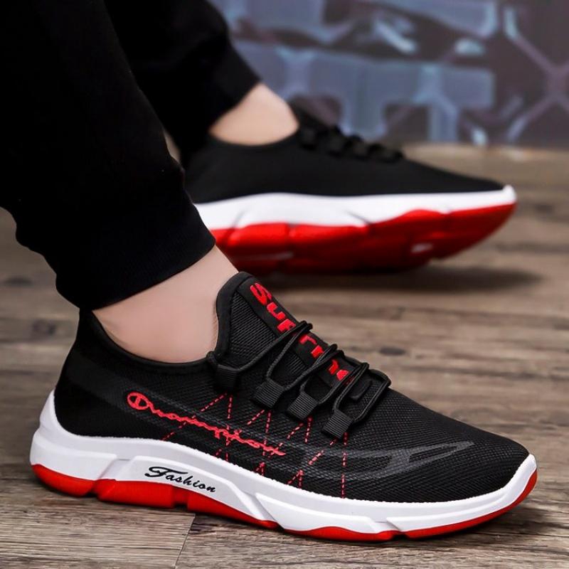 Sepatu Sneakers Olahraga Casual Bahan Mesh Breathable Anti Slip Warna Hitam Merah Untuk Pria Shopee Indonesia