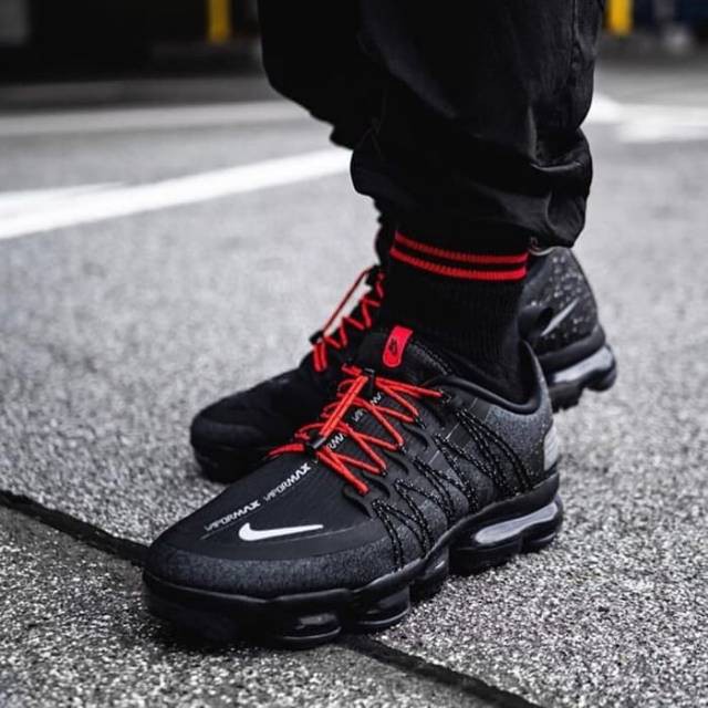 Sepatu Sneakers Olahraga Model Nike Air Vapormax Run Warna Hitam Merah Untuk Pria Shopee Indonesia