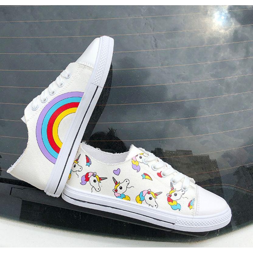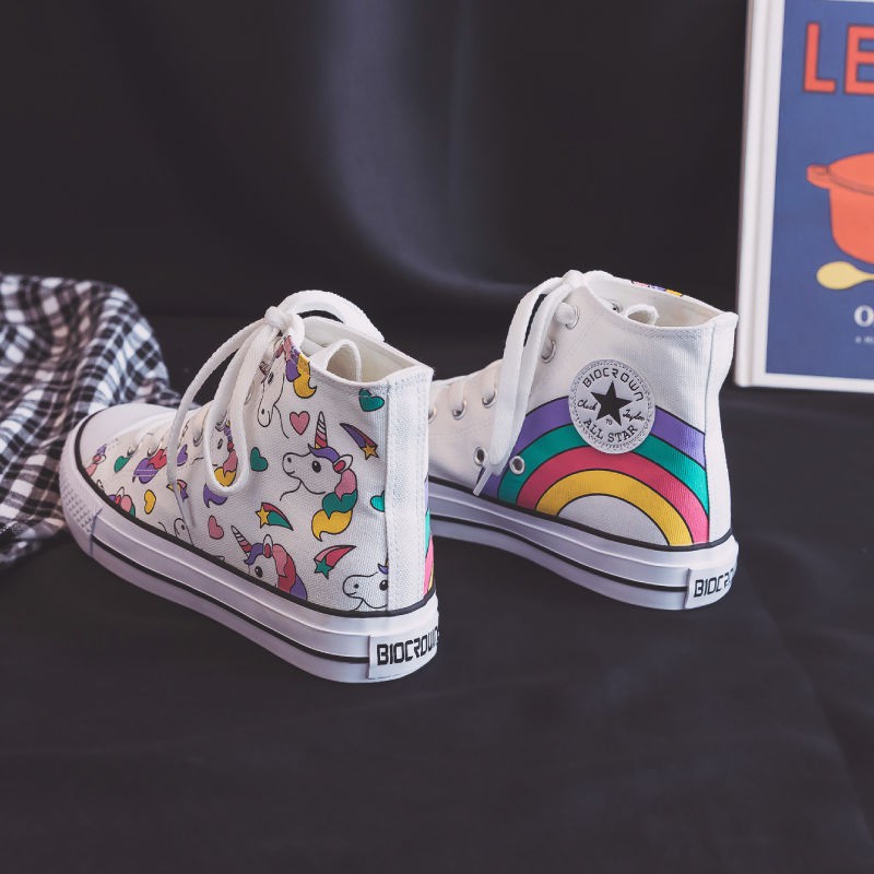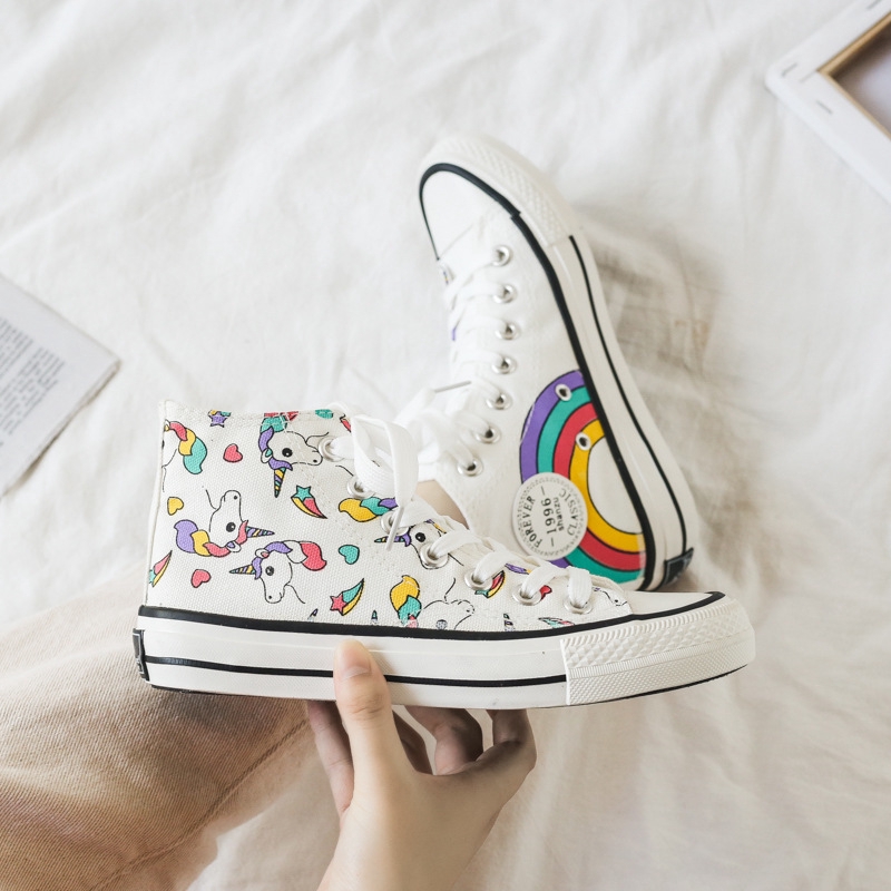 Hobyluby Kanvas Sepatu Wanita Merek Desain Fashion Tinggi Baru Sepatu Kanvas Sepatu Rainbow Unicorn Kartun Tren Wanita Sepatu Kanvas Sepatu Datar Nyaman Lembut Lazada Indonesia
