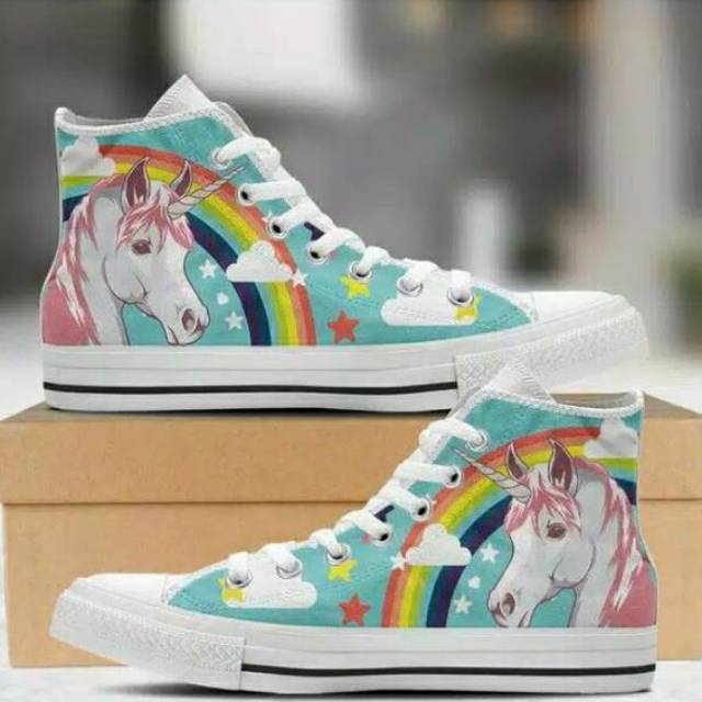 Sepatu Sneakers Model High Top Bahan Kanvas Motif Unicorn Pelangi Untuk Wanita Shopee Indonesia