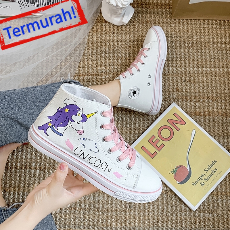 Sepatu Sneakers Kanvas High Top Bertali Motif Kartun Unicorn Untuk Wanita Shopee Indonesia