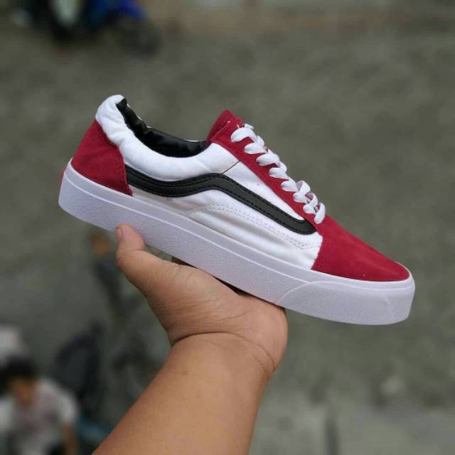 Sepatu Vans Old Skool Varian Warna Merah Putih List Hitam Shopee Indonesia