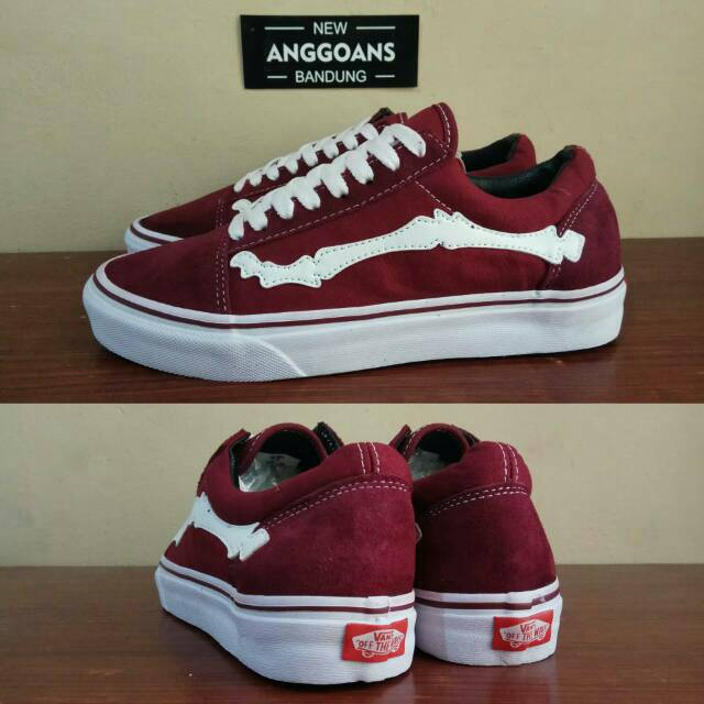 Sepatu Vans Oldskool Vault Motif Bones Tulang Red Maroon Merah Marun Premium Waffle Icc Shopee Indonesia
