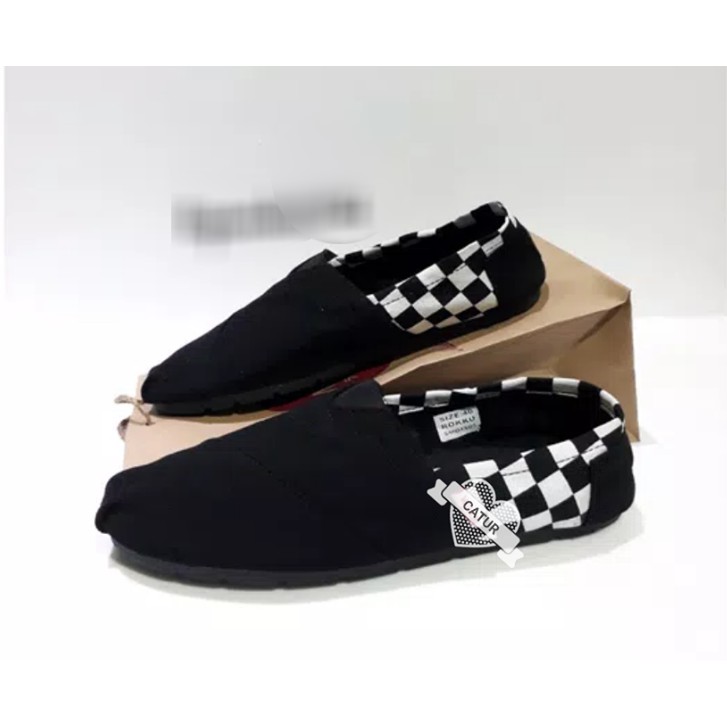 Diskon Murah Sepatu Wakai Pria Wanita Slip On Hitam Catur Shopee Indonesia