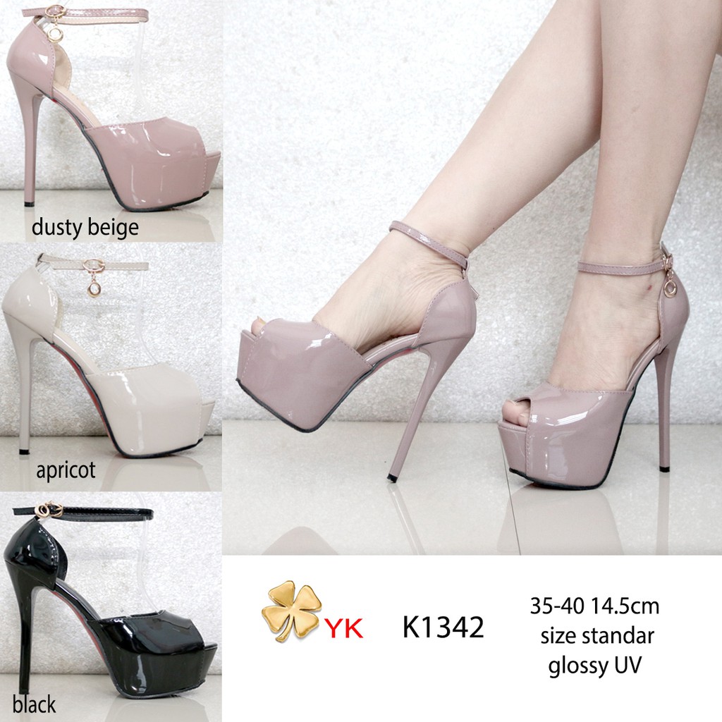 Ykshoes 1342 Strappy Heels 15cm 15 Cm Shoes Import Sepatu Wanita Tali Hak Tinggi Glossy Hitam Cream Shopee Indonesia